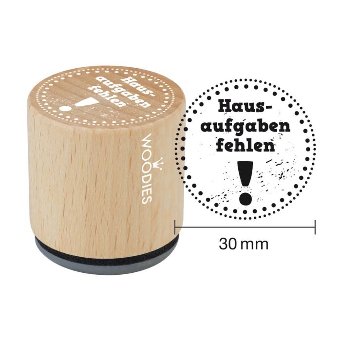 Woodies Motivstempel für Lehrer: Hausaufgaben fehlen! - 30 mm Durchmesser